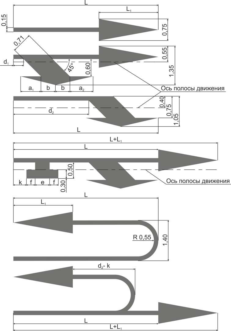 Трафарет для дорожной разметки по СТБ 1231-2012 "1.18.8 Направление движения по полосам - запрет,прямо/налево"